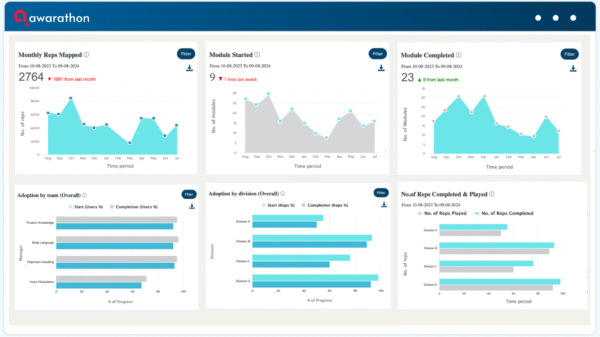 Through AI-driven simulations, Awarathon’s AI coach acts as an ideal medical rep. It shows how to handle real-world scenarios and provides 24/7 support to navigate sales discussions effectively and professionally.