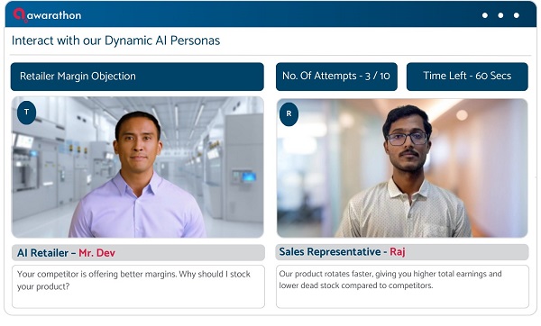 Awarathon is the best choice for FMCG sales training, combining AI-powered simulations, real-time feedback, and multilingual support to prepare sales reps for every customer interaction. It ensures accurate product messaging, confident objection handling, and consistent performance across teams. By adopting Awarathon, FMCG companies gain the edge in faster onboarding, higher engagement, and measurable improvements, making it the ultimate solution for effective and scalable sales training.